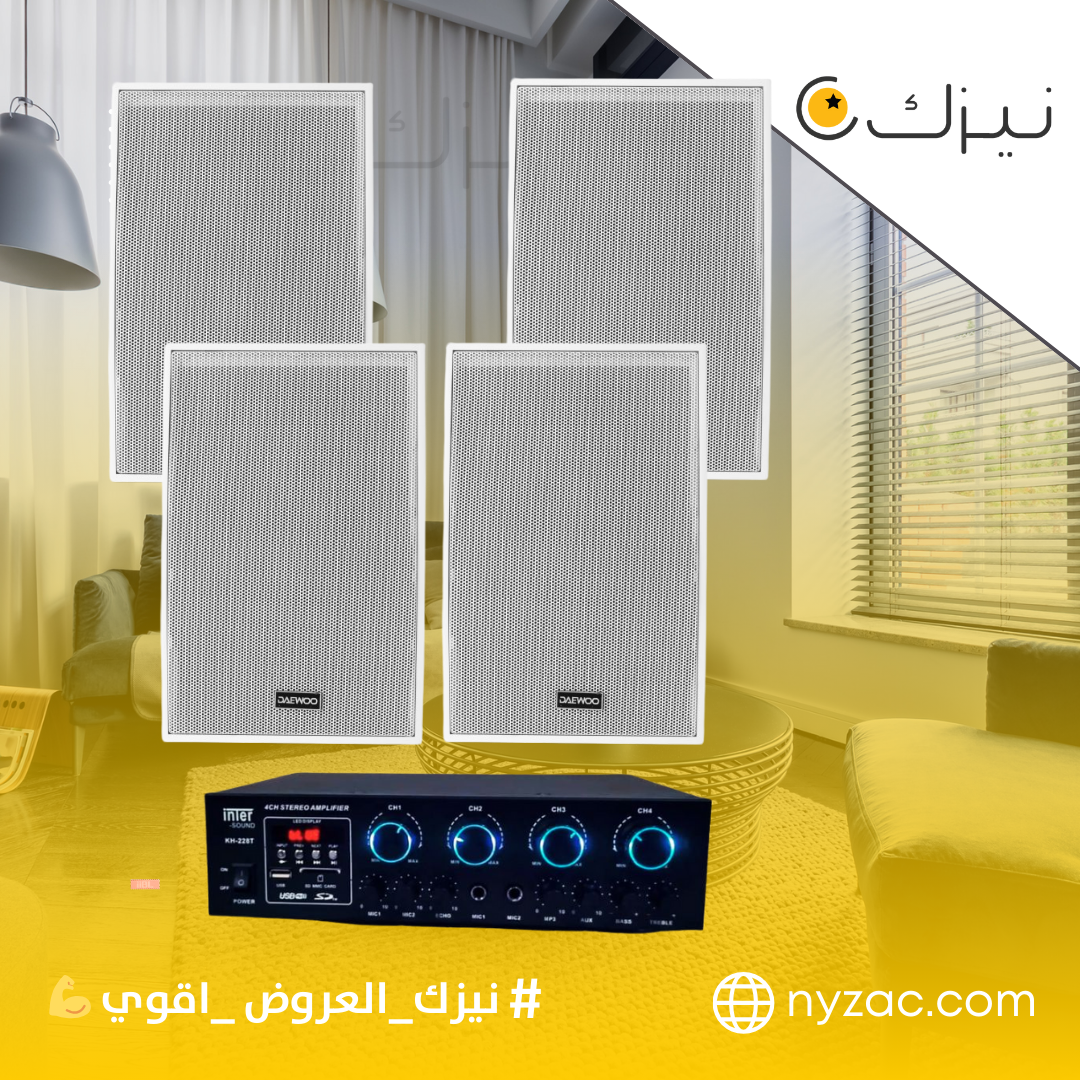 ساوند سيستم 4سماعات حائطي 4 سماعات حائطي شبكة كاملة وامبليفاير تحكم 4 زون تحكم في مستوي الصوت ل 4 مناطق مختلفة